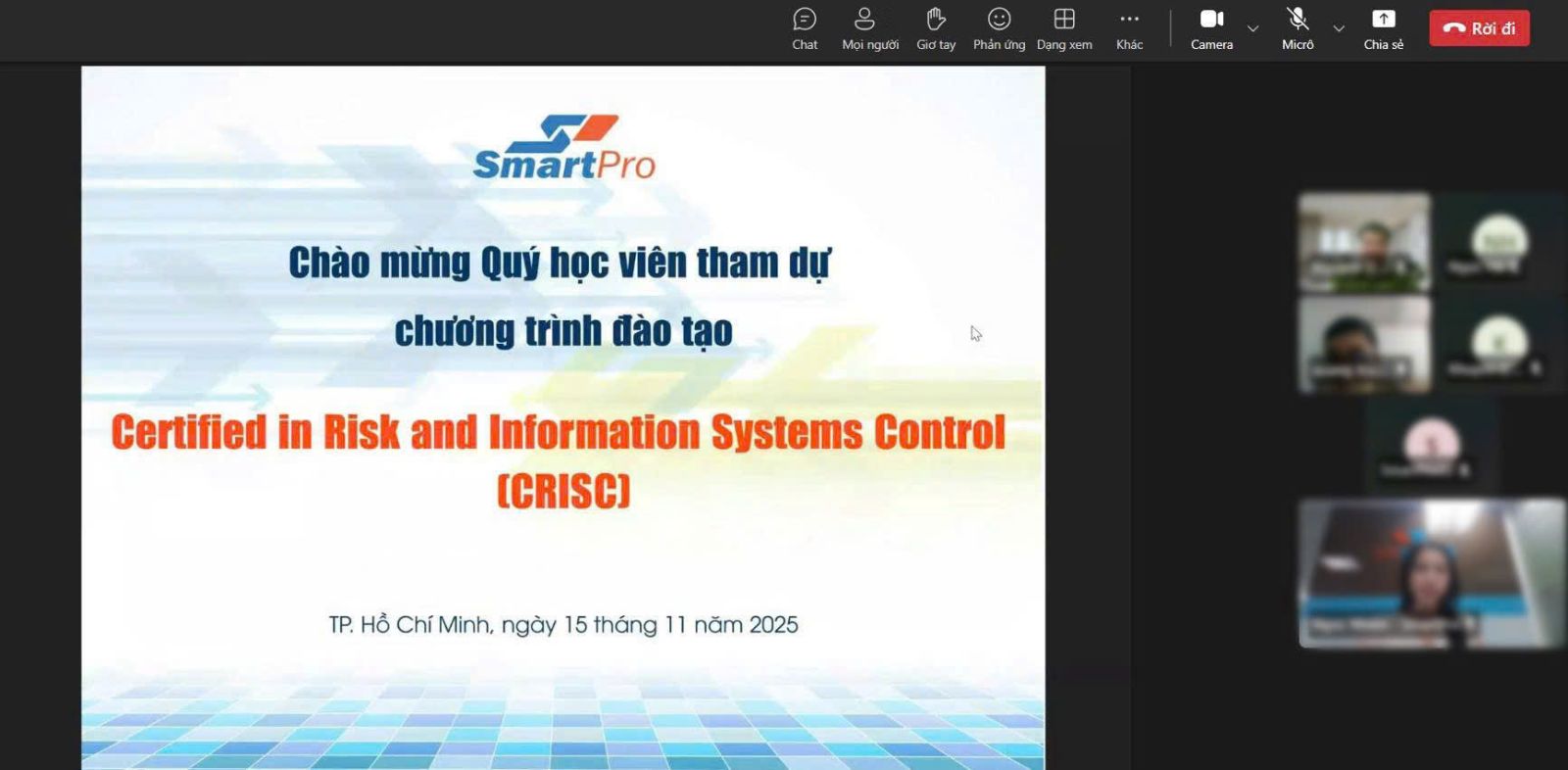 Với nhiều năm kinh nghiệm tổ chức các khóa học chứng chỉ quốc tế cho doanh nghiệp và đông đảo học viên cá nhân, SmartPro tiếp tục mang đến chương trình CRISC - Certified In Risk And Information System Control được xây dựng chuẩn mực, cập nhật và gắn sát thực tiễn. Khóa học đã khai giảng ngày 15/11 và được tổ chức vào thứ bảy hàng tuần theo hình thức trực tuyến linh hoạt, đồng thời SmartPro cung cấp bản ghi bài giảng, giúp học viên chủ động ôn tập và theo sát toàn bộ nội dung quan trọng của chương trình, mang đến trải nghiệm học tập vừa thuận tiện vừa trọn vẹn.