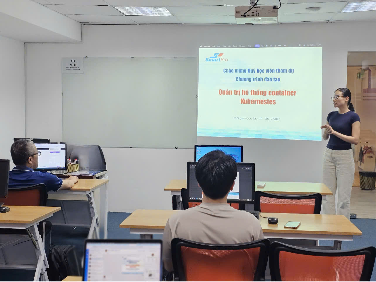 Ngày 28/12, SmartPro đã triển khai thành công khóa đào tạo “Quản trị hệ thống container Kubernetes (K8s)” dành cho đội ngũ kỹ sư CNTT của đơn vị thuộc lĩnh vực Dầu khí, khóa học được tổ chức trực tiếp tại SmartPro, với sự dẫn dắt của giảng viên giàu kinh nghiệm thực chiến trong triển khai và vận hành hệ thống container quy mô lớn.